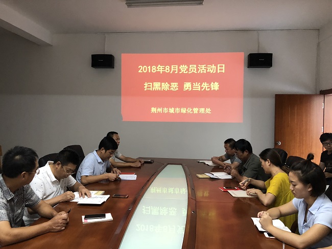 荊州市城市綠化管理處 “掃黑除惡、勇當(dāng)先鋒”主題黨日活動(dòng)開(kāi)展情況 為進(jìn)一步貫徹落實(shí)習(xí)近平總書(shū)記關(guān)于開(kāi)展掃黑除惡專(zhuān)項(xiàng)斗爭(zhēng)重要指示精神,教育引導(dǎo)單位廣大黨員同志提高政治站位,帶頭抵制黑惡勢(shì)力,帶頭參與掃黑除惡專(zhuān)項(xiàng)斗爭(zhēng),為鏟除黑惡勢(shì)力滋生土壤提供堅(jiān)強(qiáng)組織保證,2018年8月10日,荊州市城市綠化管理處以“掃黑除惡、勇當(dāng)先鋒”為主題,開(kāi)展了一次主題黨日活動(dòng)。